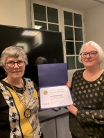 Kveldens høydepunkt var utdelingen av PHF til klubbens medlem Kirsten Berg Schjerven. Kirsten har markert seg som en pådriver, et effektivt og dyktig medlem i Rotaryklubben. Alle oppgaver hun tar på seg blir løst på en overbevisende måte. (les mer om Kirsten og begrunnelsen i egen sak). Gratulerer Kirsten !!!