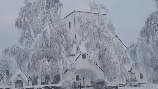 Et prakteksemplar av en bok som Gunnar har lagt ned mye arbeid i.Han fortalte om den dramatiske brannen i 1915, da lynet slo ned i spiret på Tømmerkirka og bygging av ny kirke. Rotaryklubbens medlemmer og andre deltagere fikk en «spennende reise» i jubileumskirkas bygging, arkitektur, inventar og særpreg.