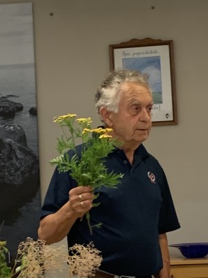 Vår egen Jacob var kveldens kåsør. Og var vi ikke friske så hadde vi all grunn til å bli det etter kveldens kåseri om planter i veigrøfta, som i folkemedisinen ble brukt til medisiner.Den årlige rasering av blomsterprakten langs veiene våre, med digre maskiner var han veldig imot. En utgift det offentlige kan spare seg for i en tid da miljøet blir vektlagt.