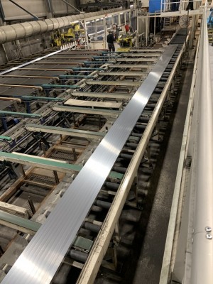 Med verneutstyr ble vi med på en vandring i den kjempestore fabrikkhallen. Imponerende med all automatikken hvor vi så tunge Al-bolter bli til lette profiler.