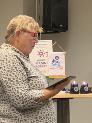 Klubbmøte 20.des. 2022. Past president Åshild ønsket alle velkommen og åpnet møtet med de 4 viktige spørsmålene og tente lys for Fred og Vennskap.