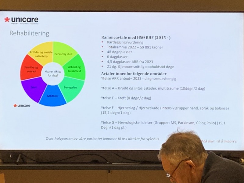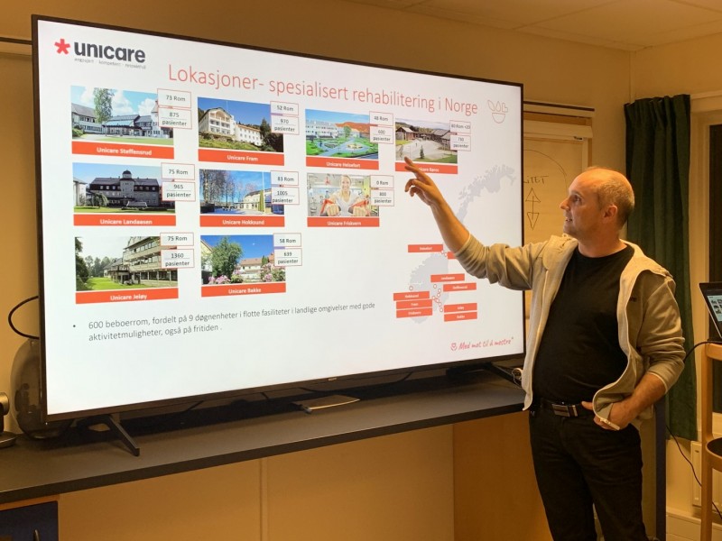 Det ble et hyggelig og nyttig møte, der vi fikk god kunnskap om en stor aktør innen helse, i vårt lokalmiljø. Vi ble godt mottatt av leder og forskningsansvarlig Svein Tore Amlien. Han tok oss med på en oversiktlig og grei gjennomgang av UNICARE.
