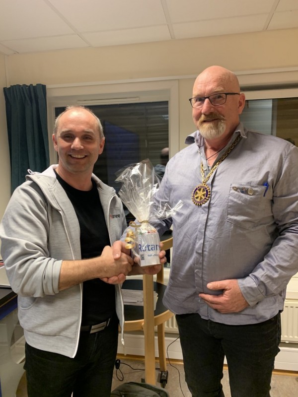 Vi ble servert kaffe og wienerbrød mens president Charles takket for oss og overleverte et Rotarykrus til Svein Tore. De som ønsket fikk en omvisning på senteret av Nils Terje
