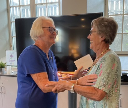 Sommerkledde og glade rotarianere, flere med sine respektive, møttes til Rotary-årets
