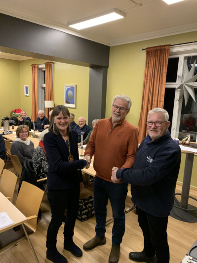 President Wenche ønsket alle hjertelig velkommen til kveldens kameratskapsmøte, og ønsket spesielt velkommen til Styrk Flatebø, som skulle tas opp som medlem.