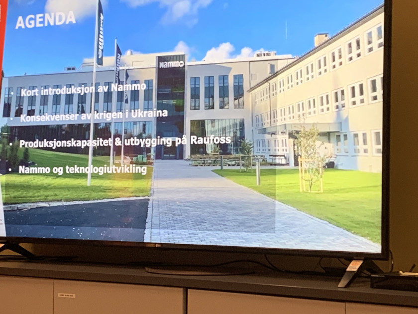 Han fortalte inngående om alle sider ved våpenproduksjonen, og med både stolthet og ydmykhet om bedriftens (ofte omdiskuterte) plass i landet og lokalsamfunnet. Samtidig fikk vi en powerpointvisning som utfylte hans nesten timelange og frittalende foredrag.