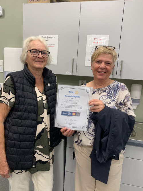 Som takk for omvisning og orientering, overrakte president Kirsten Rotarys diplom til Brit og bedriften.