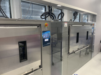 President Kirsten ønsket velkommen, etter at vi alle hadde sørget for å få riktig bekledning i form av plastfrakker og ditto sokker. Hun overlot ordet til fagansvarlig, Brit Slåttsveen, som viste oss rundt i hele bygget, som sto ferdig og ble tatt i bruk i mai 2024.