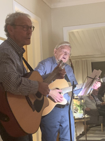 Plutselig fikk vi uventet besøk. Lorang entret stua med gitar. Han er en lokal sjarmør og framførte viser og historier fra lokalmiljøet og fant etter hver fram til felles sanger og toner med verten Arne. Artig!!