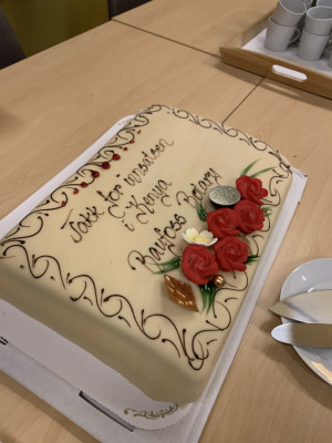 Det ble servert kaffe og marsipankake. Vi vil takke Goman Kjeldstad Bakeri, Skreia for hyggelig hilsen og deilig kake.