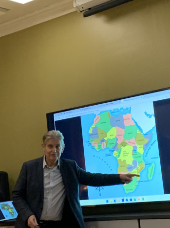 Foredraget v/Arild Øyen ble innledet med kart over Afrika på skjermen.