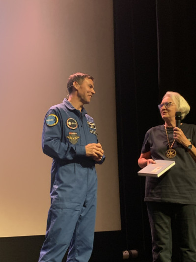 Takket være mamma Anne-Torin, ble dette gjort mulig å få til et fortreffelig møte, i samarbeid med Raufoss Rotaryklubb og Rotary Hunn/Gjøvik Et foredrag som astronauten ønsket å gi ungdomsskoleelevene i kommunene.