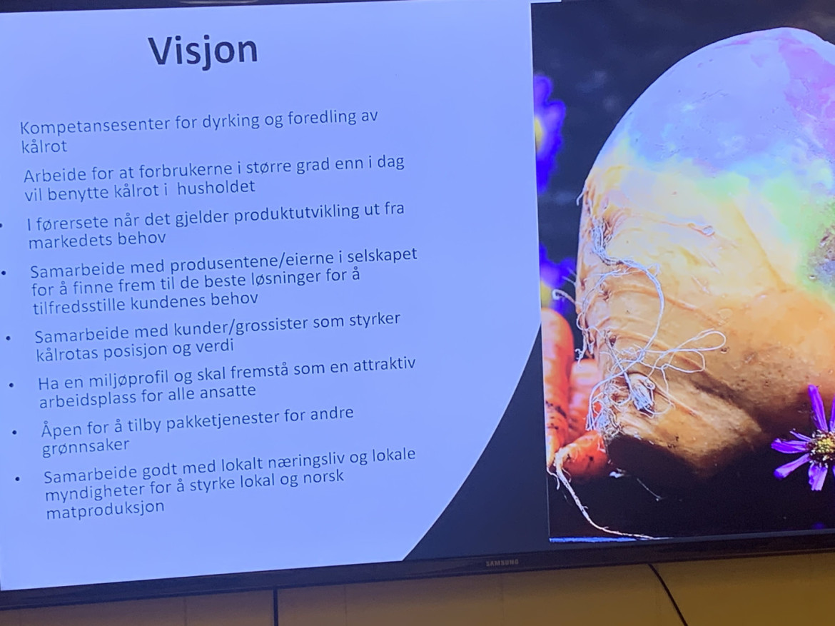 Torgeir snakket varmt om håpet om å snu trenden, dvs å få de unge til å spise mer kålrot. Kålrota er krevende å produsere, men en vinner på kjøkkenet; den er klimavennlig, kan