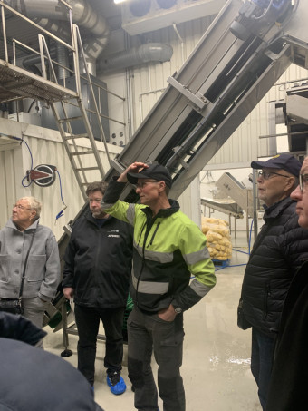 Jøran Narum tok oss deretter med inn i produksjonshallene, og viste med stor innlevelse hvordan hele prosessen foregår fra produsentens traktorlass til ferdig skrellet og pakket produkt. En imponerende produksjonslinje.